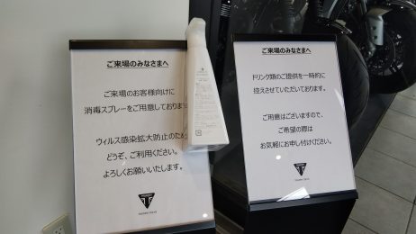 トライアンフ東京では、新型コロナウィルス感染拡大抑制のため、以下の対策を実施しております。