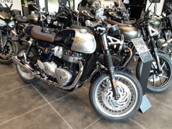 現行の限定車「Speed Twin Lightning Edition」とともに、お待ちしてまーす。