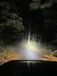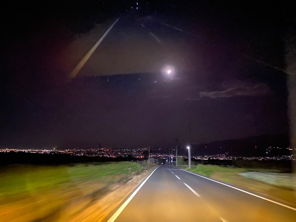 車はジープタイプで特殊なライトを装着していたので走行できましたが、普通の車では走行が難しい暗さです!