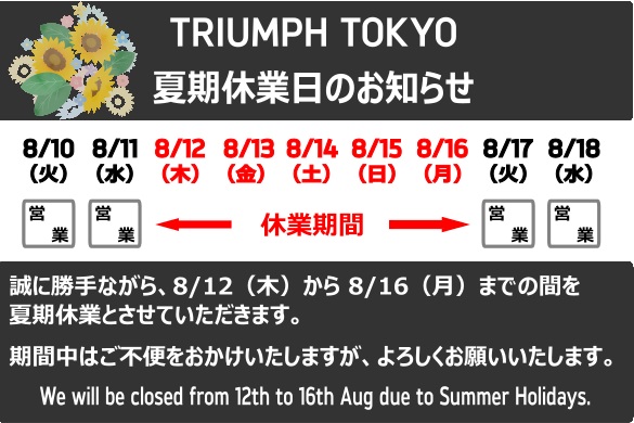 トライアンフ東京 新車情報 試乗車 試乗車一覧 中古車 中古車バイク一覧 アクセサリー クロージング クロージング クロージングカタログ ニュース 新着情報 スタッフブログ イベントスケジュール 採用情報 採用情報一覧 求人応募フォーム 店舗情報 店舗情報 お問い合わせ プライバシーポリシー オンラインサービス予約 新車情報 試乗車 試乗車一覧 中古車 アクセサリー クロージング クロージング クロージングカタログ ニュース 新着情報 スタッフブログ イベントスケジュール 採用情報 採用情報一覧 求人応募フォーム 店舗情報 お問い合わせ プライバシーポリシー オンラインサービス予約 スタッフ ブログ スタッフブログ The making of the original T-shirts TRIUMPH TOKYO BAY / TOKYO Original T-shirts 試乗コースのご紹介 on YouTube あの日、あの場所で 【8/6に寄せて】 1 / 11