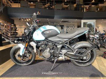 カラー案は多数ありましたがTrident660一台目はトライアンフらしさ、