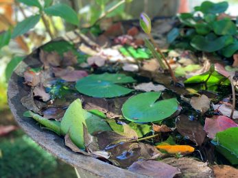 時間がゆっくり流れ、睡蓮鉢の中にいる金魚さんも挨拶してくれました。