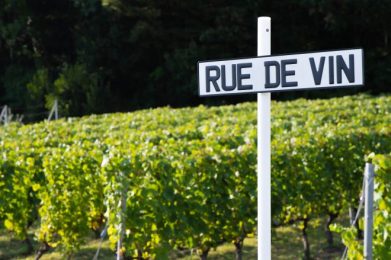 路肩にスラクストンを停めて見まわしてみると…。山裾のスロープに沿って広大な葡萄畑が!