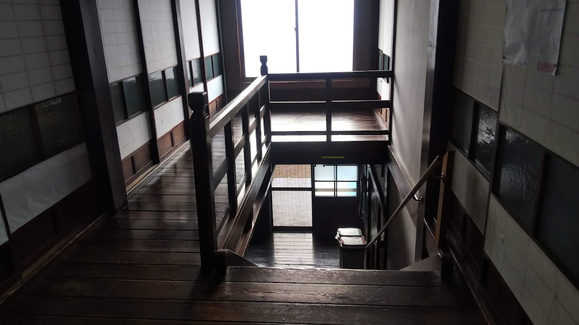 薄暗い中、黒光りする廊下に歴史を感じます。