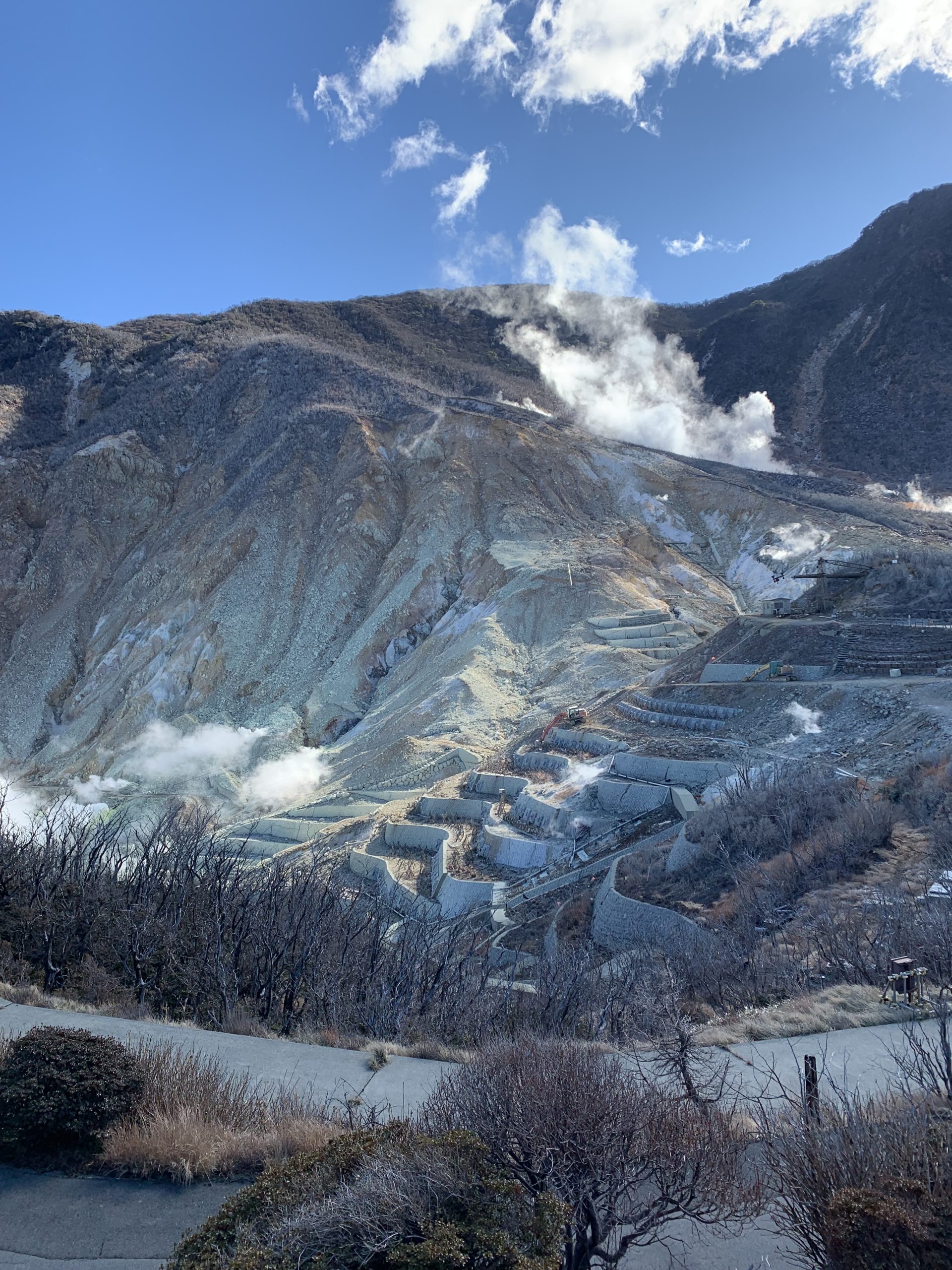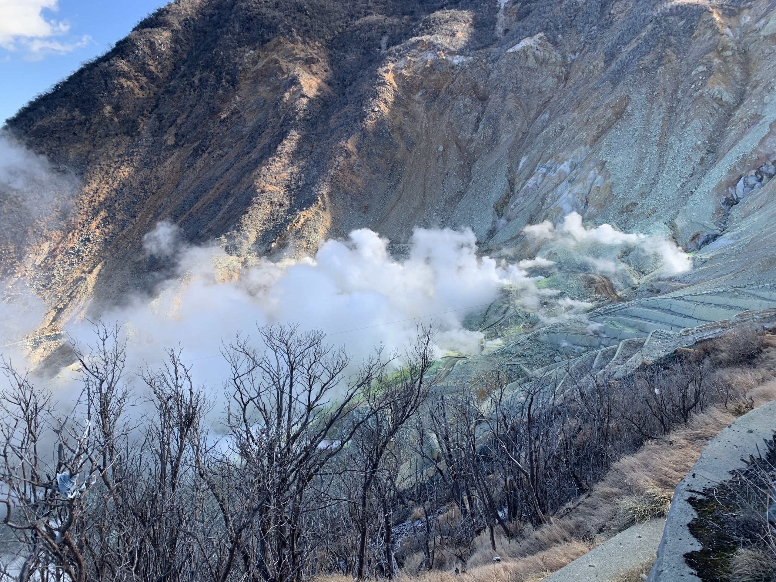 大涌谷は、およそ3000年前の噴火によって神山が崩壊してできたそうです。