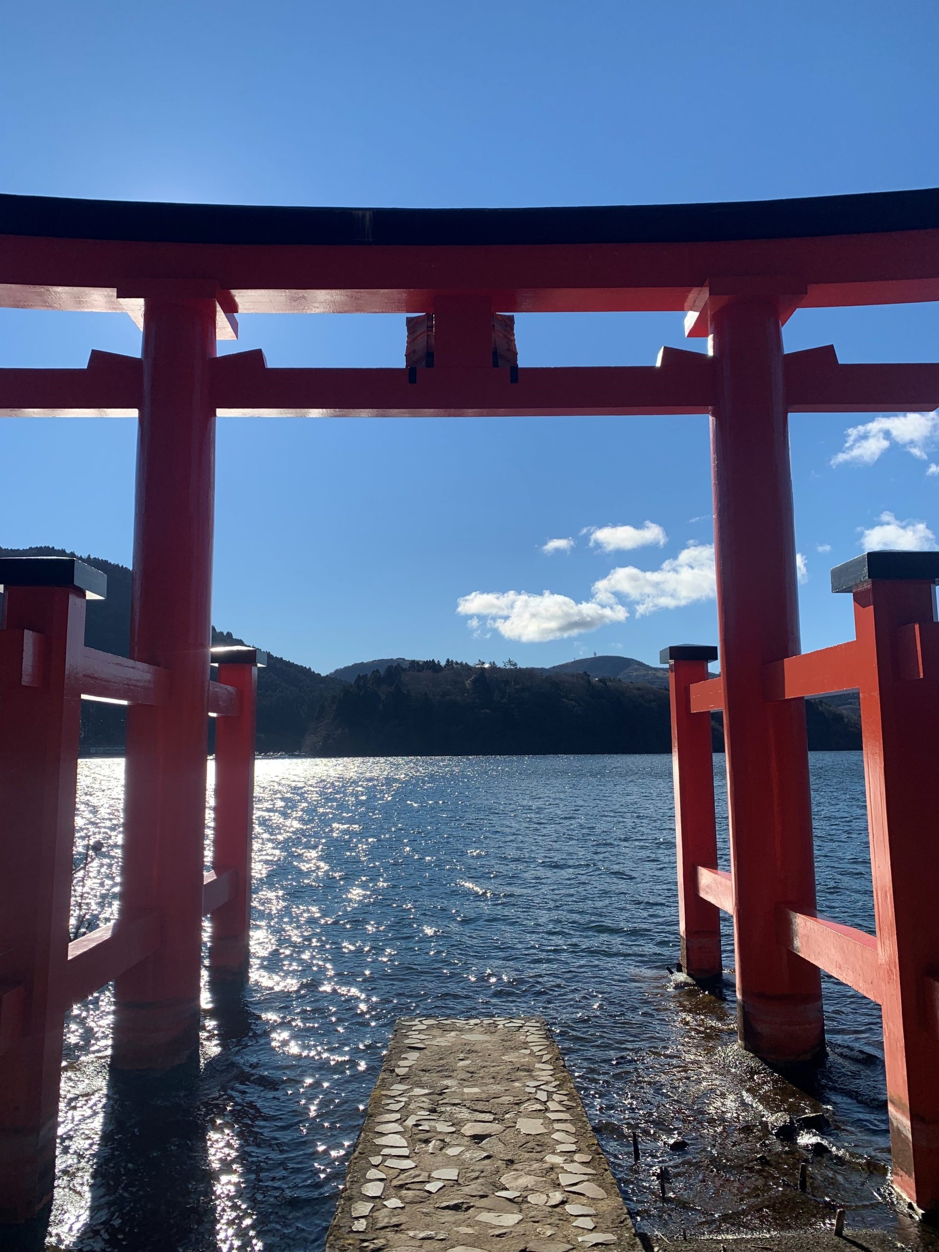 次は芦ノ湖のそびえ立つ鳥居を見に足を進め・・・。