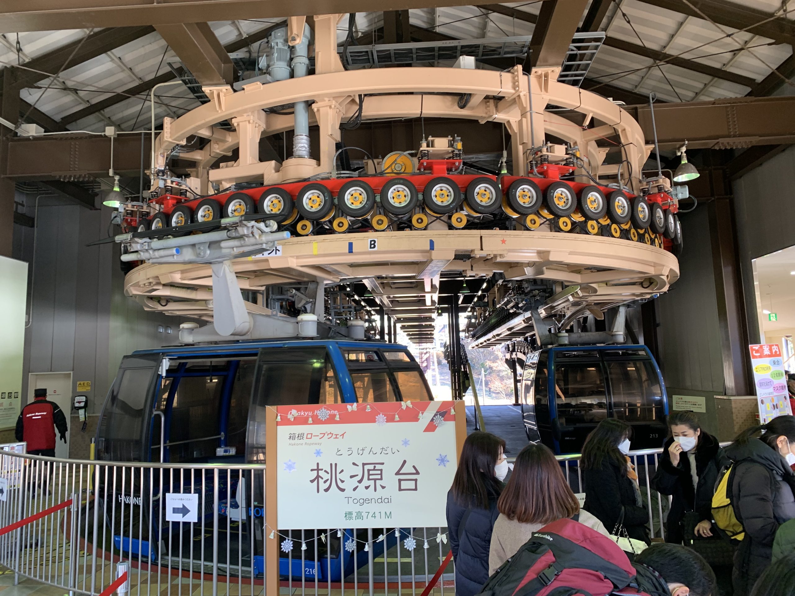 箱根観光船の専用桃源台港に到着後、箱根ロープウェイに。