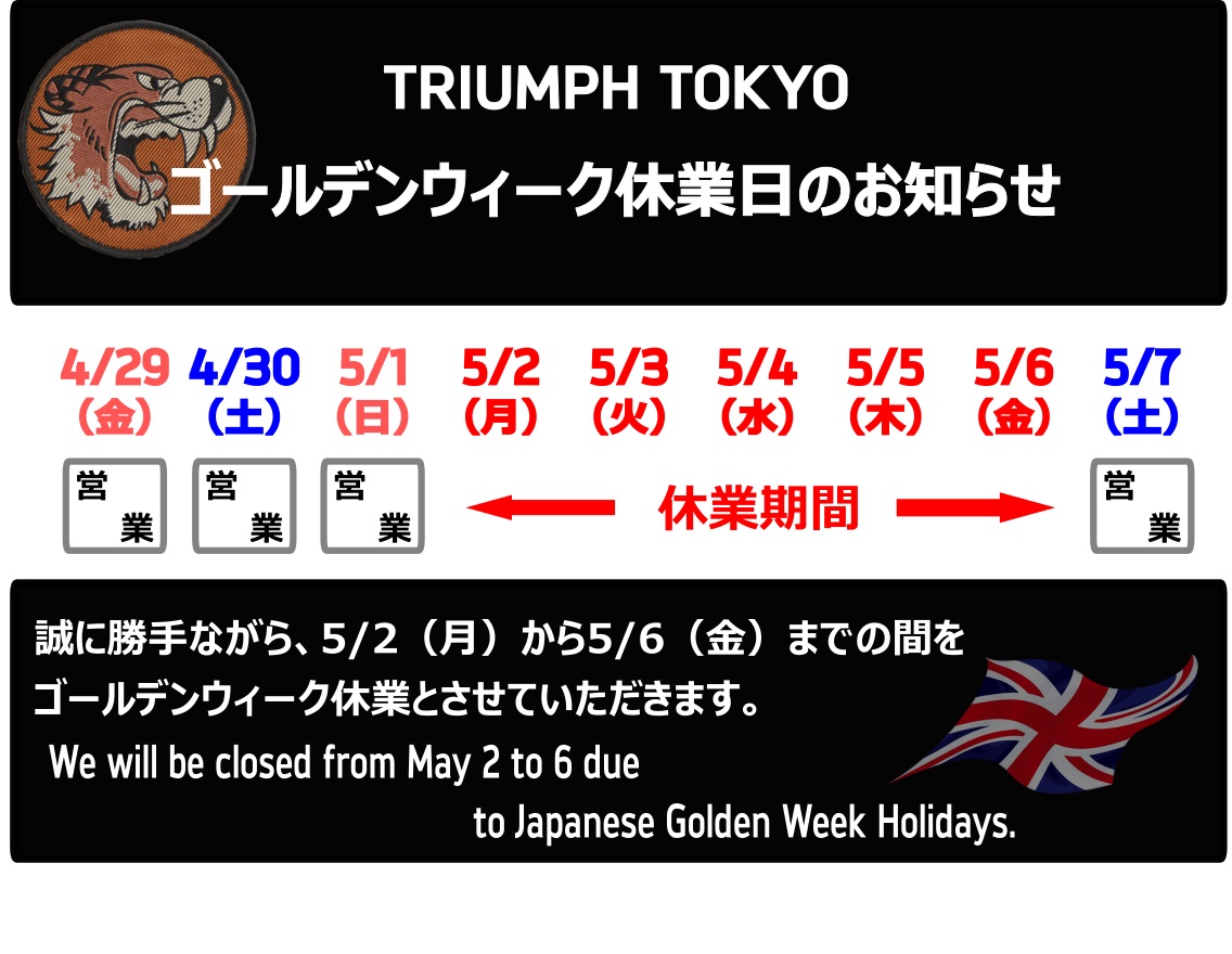 トライアンフ東京・東京ベイでは、誠に勝手ながら下記の期間お休みをいただきます。
