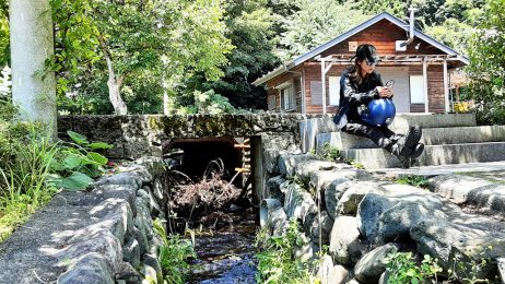 道の駅どうしで、いい感じで涼をとる華さん。