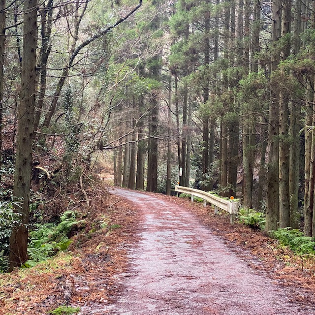 「月崎トンネル」までの道のりは、普段、車が通らないこともあり、ほぼダート状態。路面には泥と枯れ葉が積もっていて、滑らないほうがおかしい状態でした。