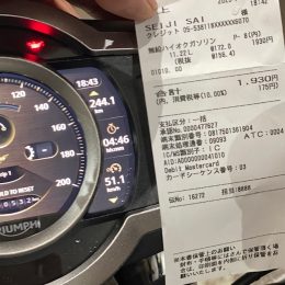 走行距離244.1キロ、給油11.22リットルでしたから、平均燃費はリッター21.76キロ。1200ccのバイクとしては優秀ではないでしょうか。もちろん、特別な燃費走行は一切していません。