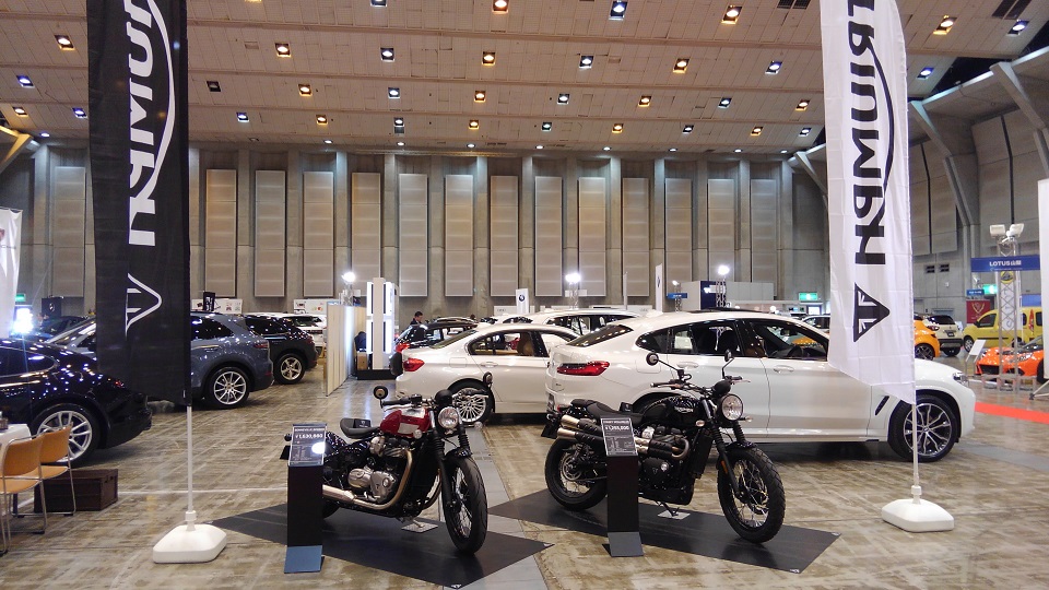 今回もグループ会社のYamanashi BMWこと、Eins Motorsの出店スペースの一角をお借りしてTRIUMPH車両を展示いたします。