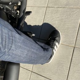 足付き性は低いシート高のお陰で、身長172cmの私の場合は両足べったりで安心です。小柄な体形の方でも大丈夫だと思いますが、足付きに不安な方はシート加工(アンコ抜き)でローシートにすることも可能です。