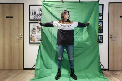 写真はWebストアで使用するため、切り抜きしやすいようにグリーンバックで撮影。