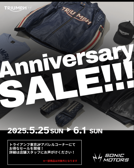 トライアンフ東京2階アパレルコーナーでお待ちしております:-D