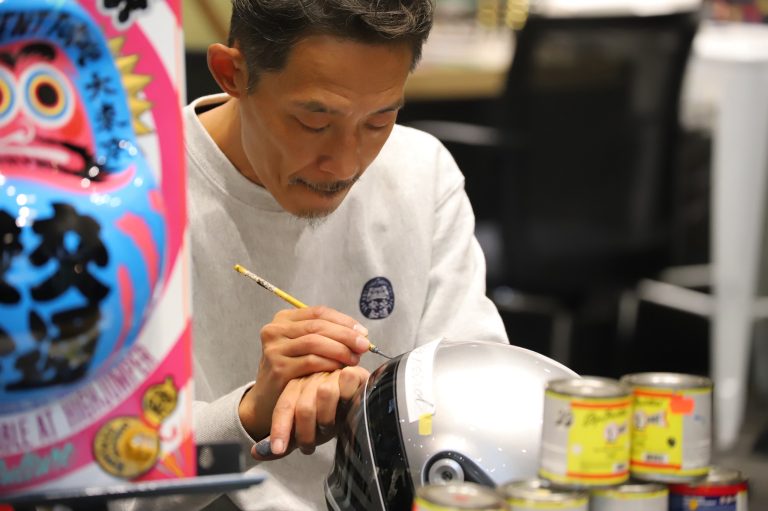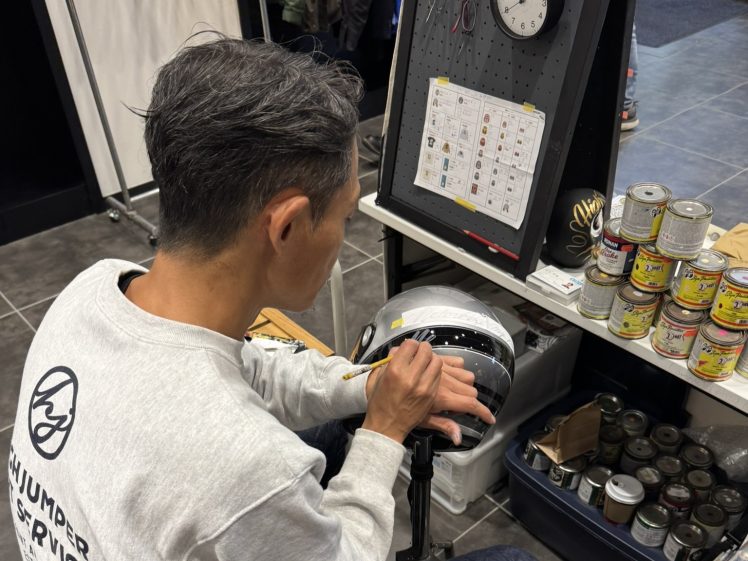 ハイジャンパー様ブースではその場でお客様のヘルメット等に即興ペイント🖌