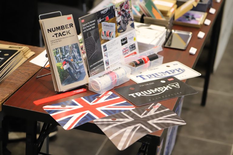 トライアンフ東京のお客様でも利用している方が多く、小物からシートまで幅広く展示いただきました!
