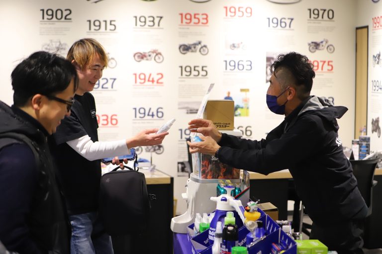 円陣家至高様のブースでは無料のチェーンメンテナンス&ケミカル販売!