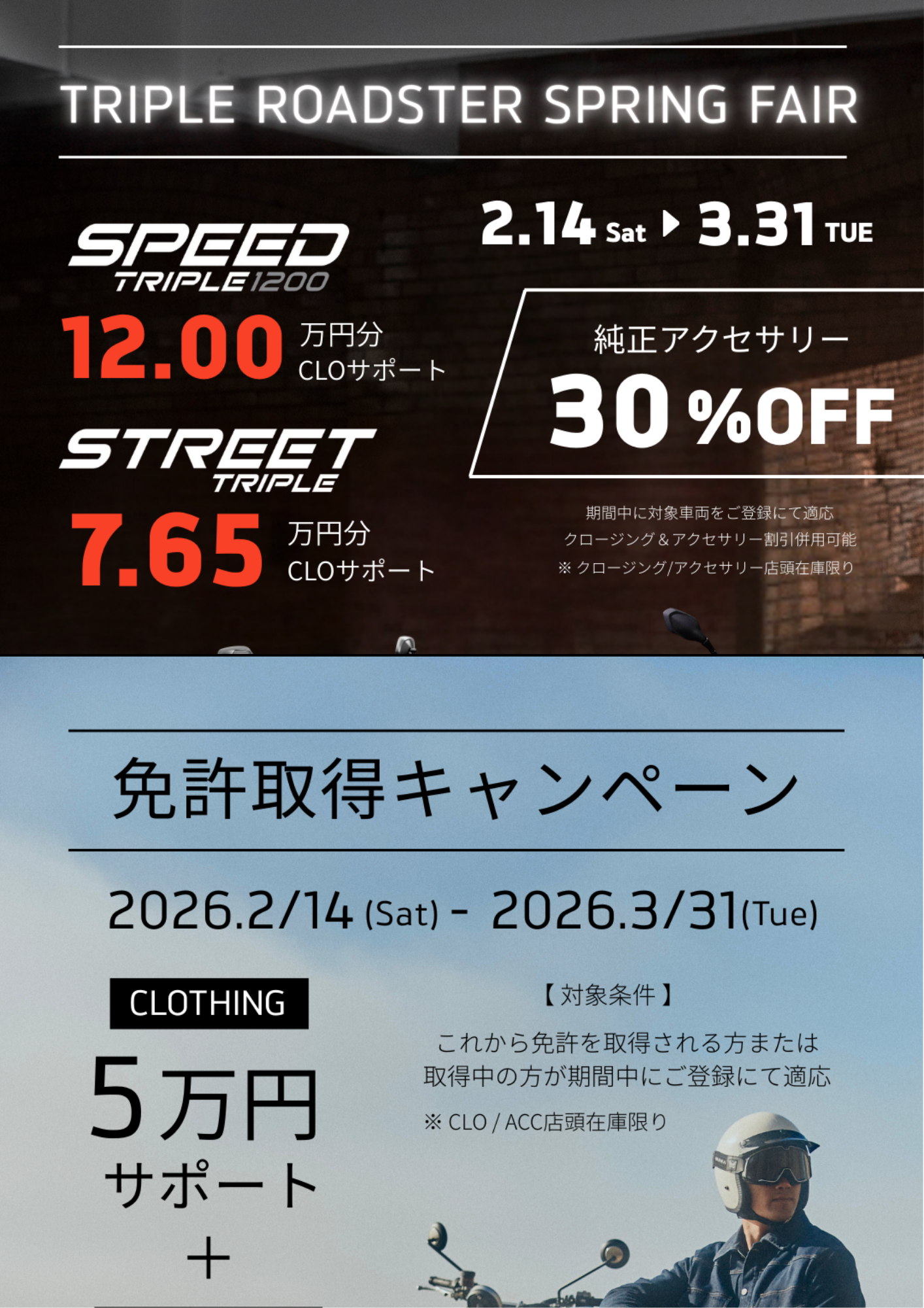 【オリジナルキャンペーン】TRIPLE ROADSTER SPRING FAIR/免許取得応援キャンペーン