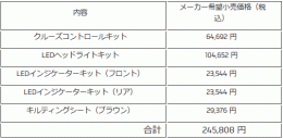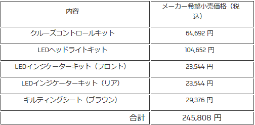 内容:期間内に対象モデルを成約・登録の場合、下記 245,808 円相当のアクセサリーを無償プレゼント。