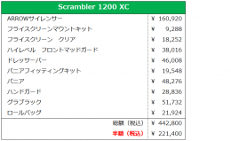 キャンペーン適用例 3:Scrambler 1200 XC アクセサリー半額