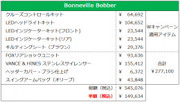 キャンペーン適用例1:ボンネビル・ ボバー特別装備車サポート+アクセサリー半額