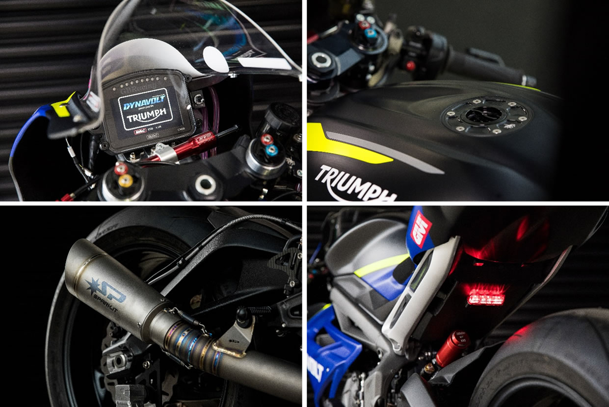 Dynavolt Triumph 765は、Street Triple RSをベースとしており、世界的な販売台数で大きな成功を収めクラスをリードするハンドリングと爽快でトルクの厚いエンジンが高く評価されています。MSVRおよびDorna WorldSBK Organisation(DWO)との協議後、トライアンフはより幅広いエンジンフォーマットの同条件下での競争が可能な新たなスーパースポーツフォーミュラの確立に協力しております。これにより市販車の開発にフィードバックできるような高いポテンシャルを提供するとともにエキサイティングなレースを展開することができます。