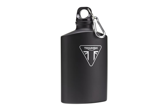 金属製のブラックボディにシルバーのブランドロゴがプリントされたボトルはツーリングのおともにぴったりです。